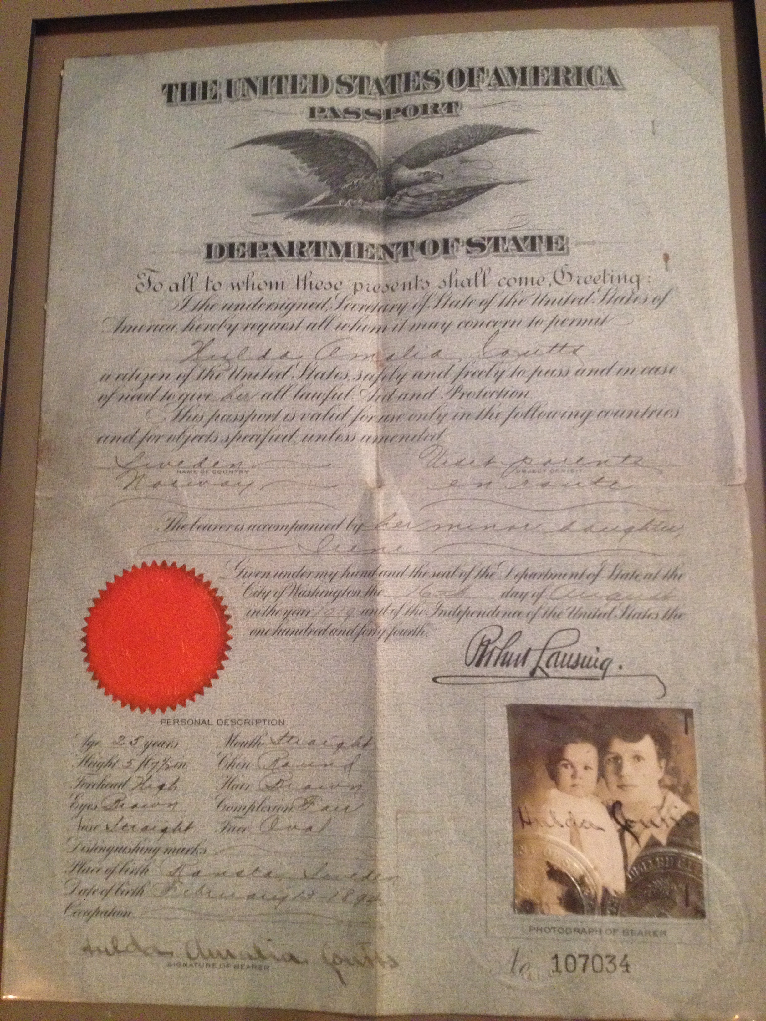 Hulda (Lindblad) Coutts’ passport with oldest daughter Irene