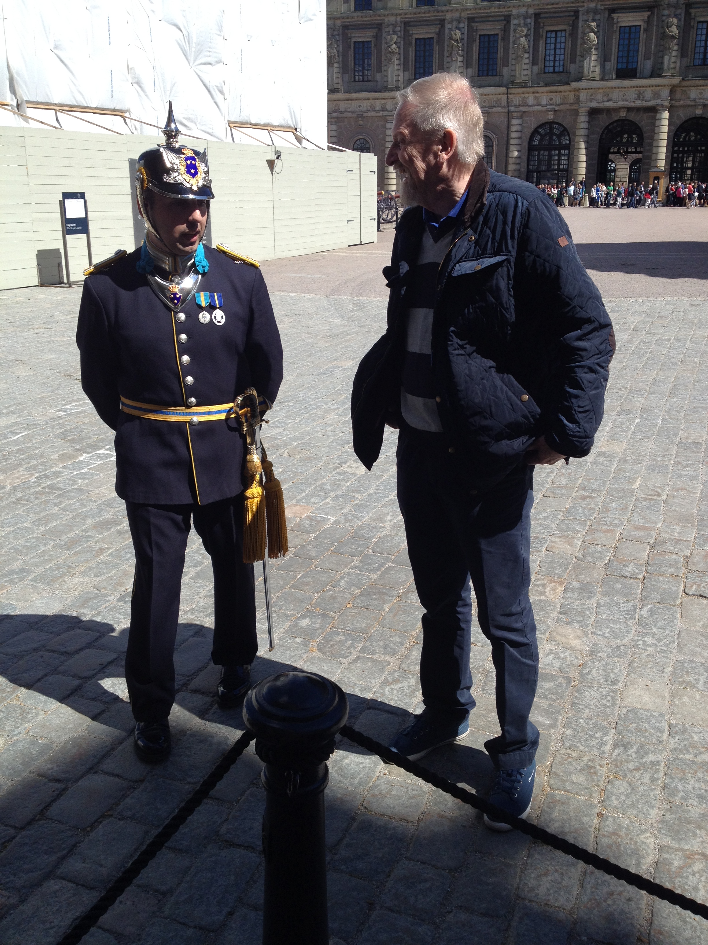 Krister is talking to one of the soldiers. Krister himself was in the Swedish military and served as a Royal Palace Guard 3 times.