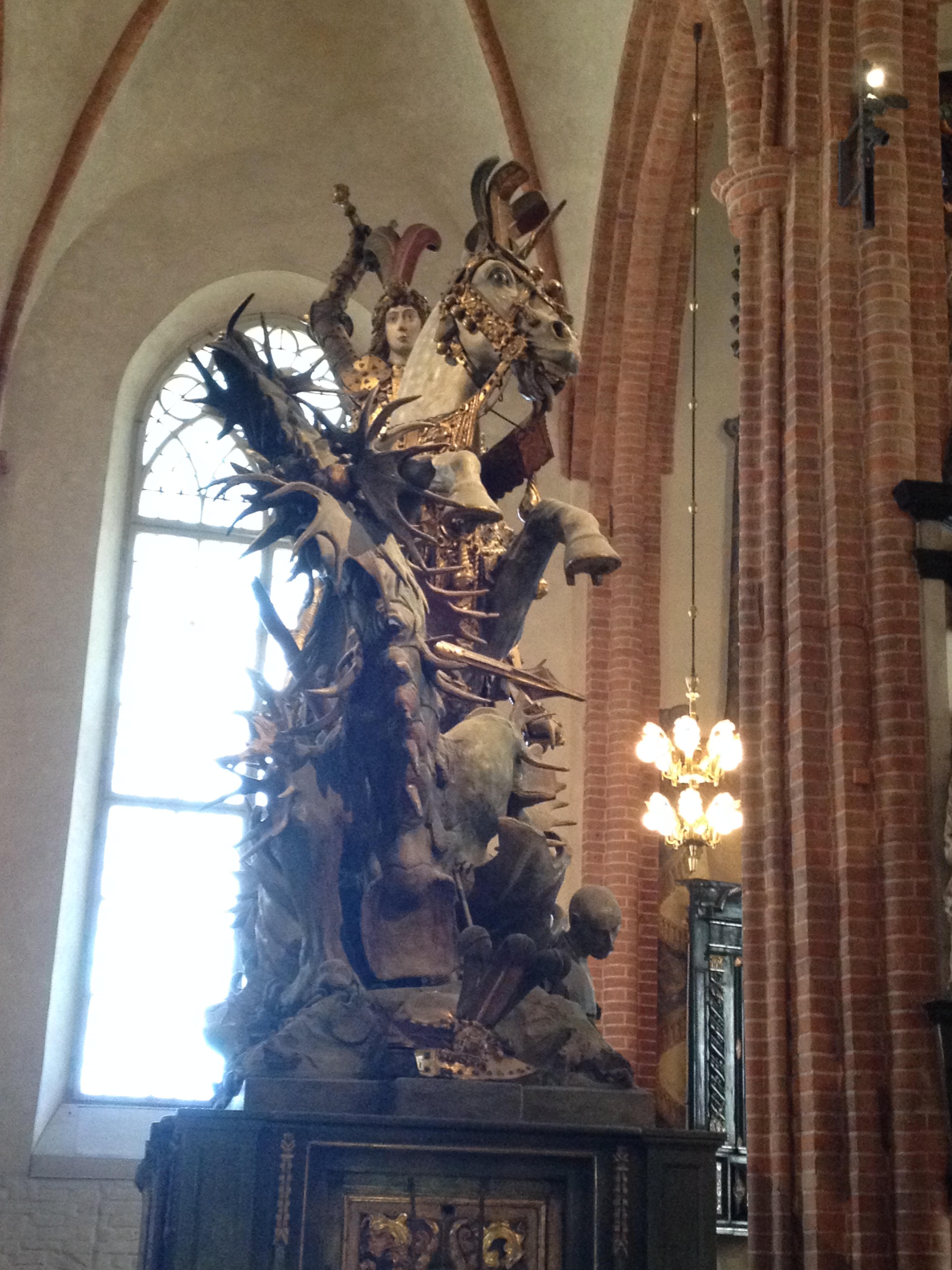 Here is another “George and the Dragon” located in Storkyrkan — the Church (now Cathedral) of Saint Nicholas in Stockholm (Sweden). I believe this is the oldest church in Stockholm.